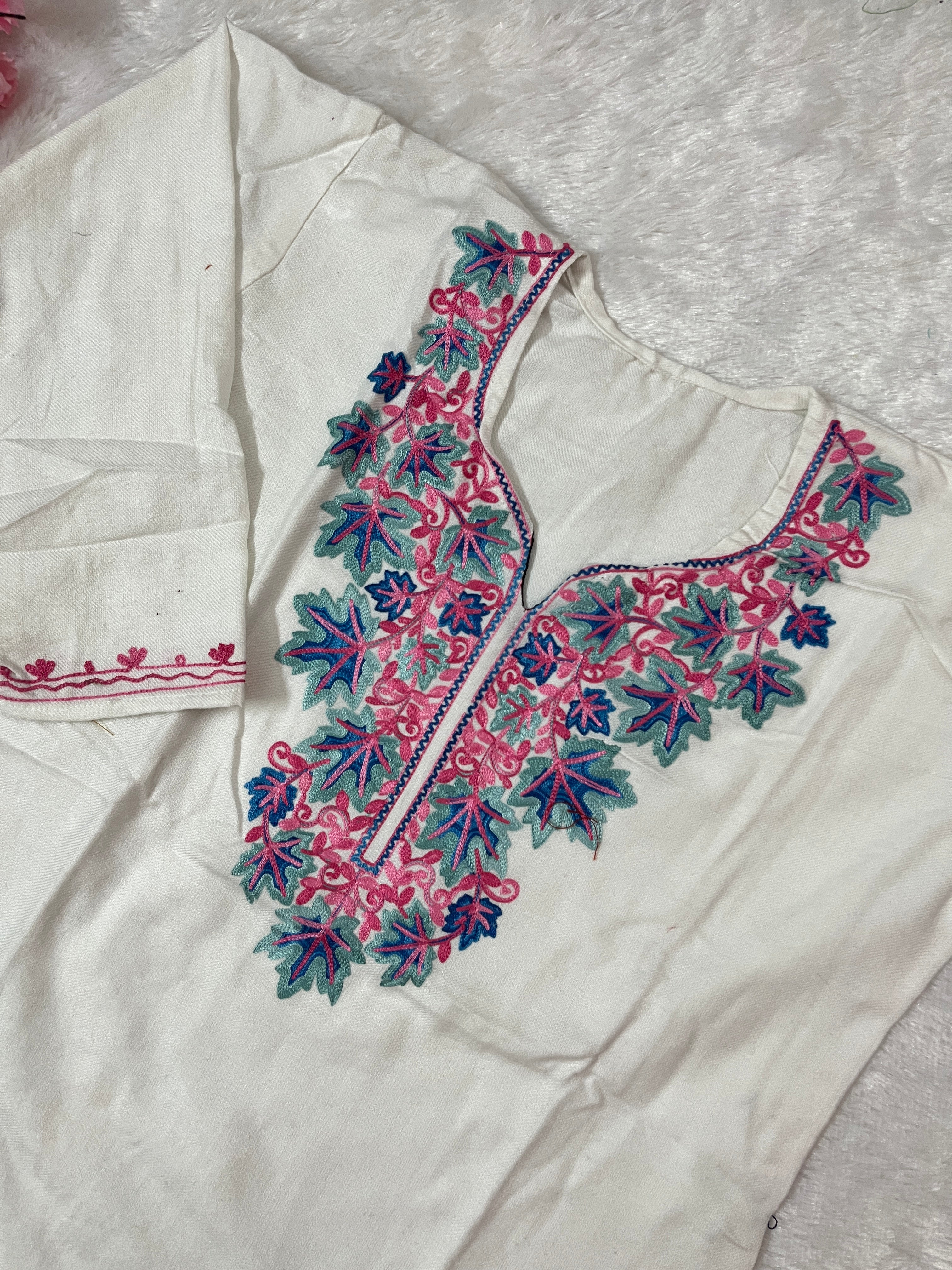 Ziya Kashmiri Short woollen kurti- White