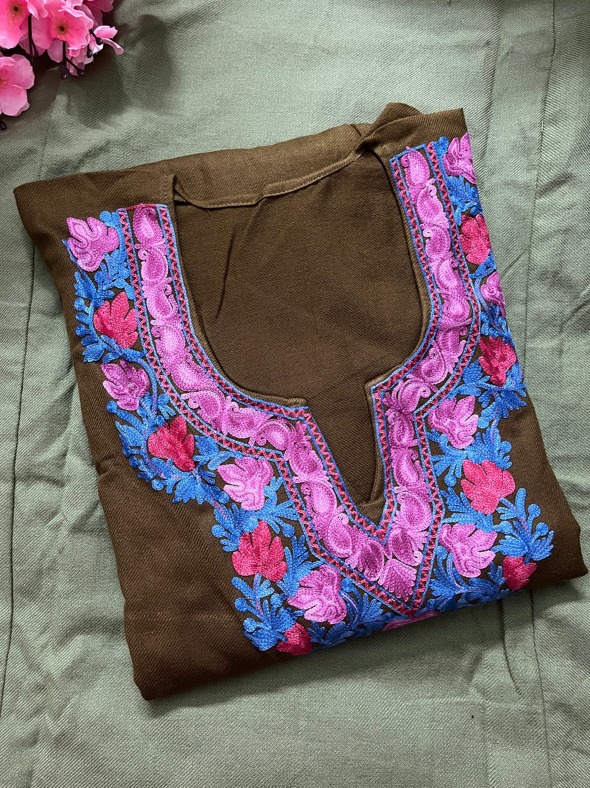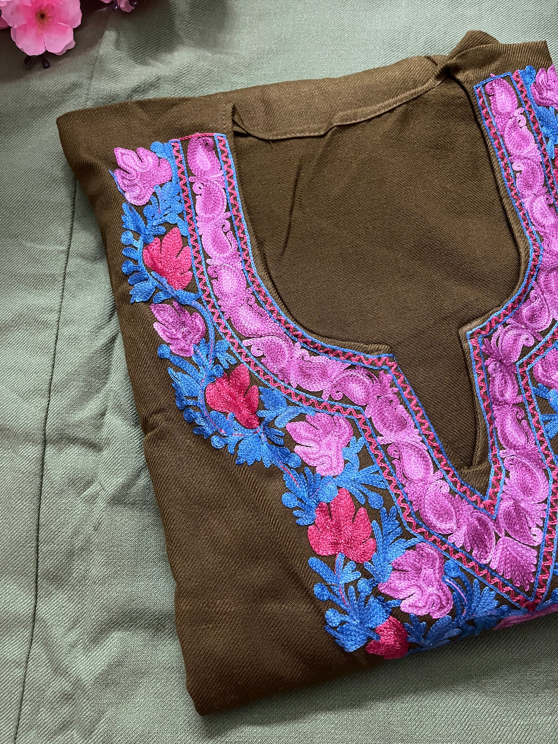 Noor Aari Woollen Pheran- Olive green